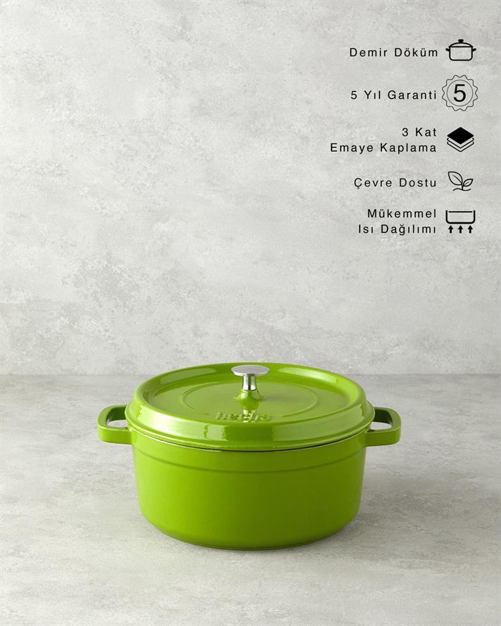 Hecha Demir Döküm Tencere 24 cm Yeşil - English Home